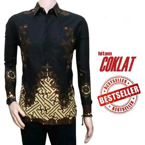 Baju Batik Pria Lengan Panjang Kemeja Seragam Kantor Busana Muslim Cowok